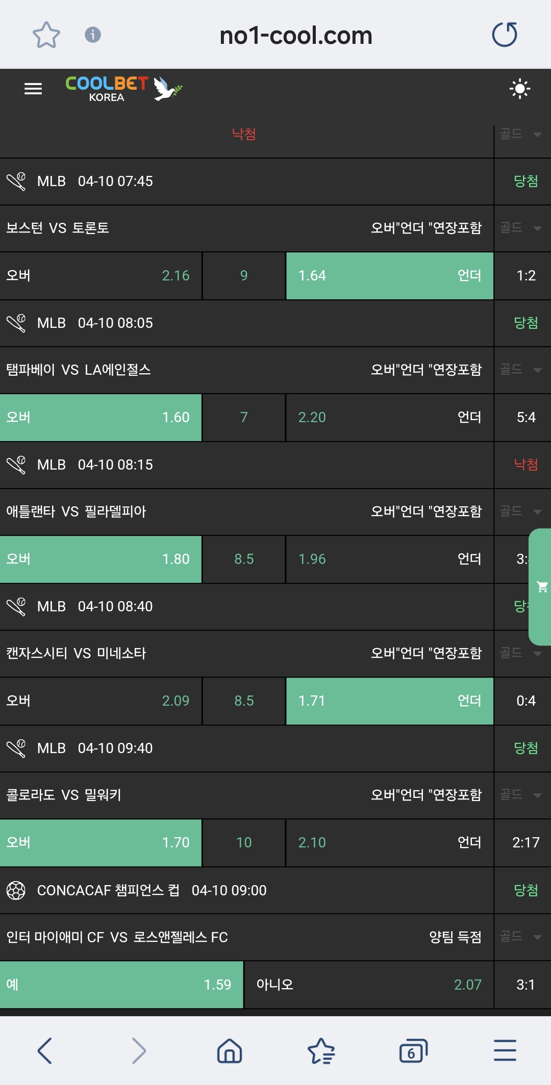저녁 3경기 가봅니다