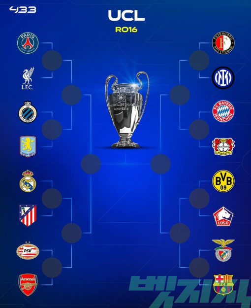 2024/25 시즌 챔피언스리그 16강 대진 확정