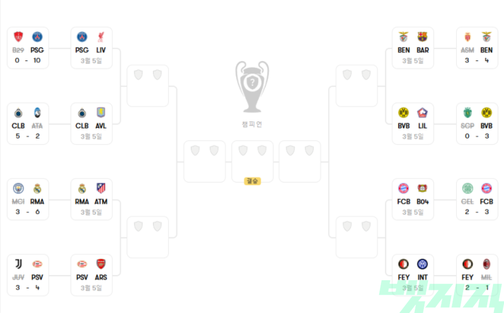 챔피언스리그 4강 대진 확정 (2024/25 시즌)