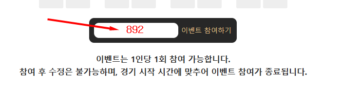 참여 후 수정은 불가능하며, 경기 시작 시간에 맞추어 이벤트 참여가 종료됩니다.