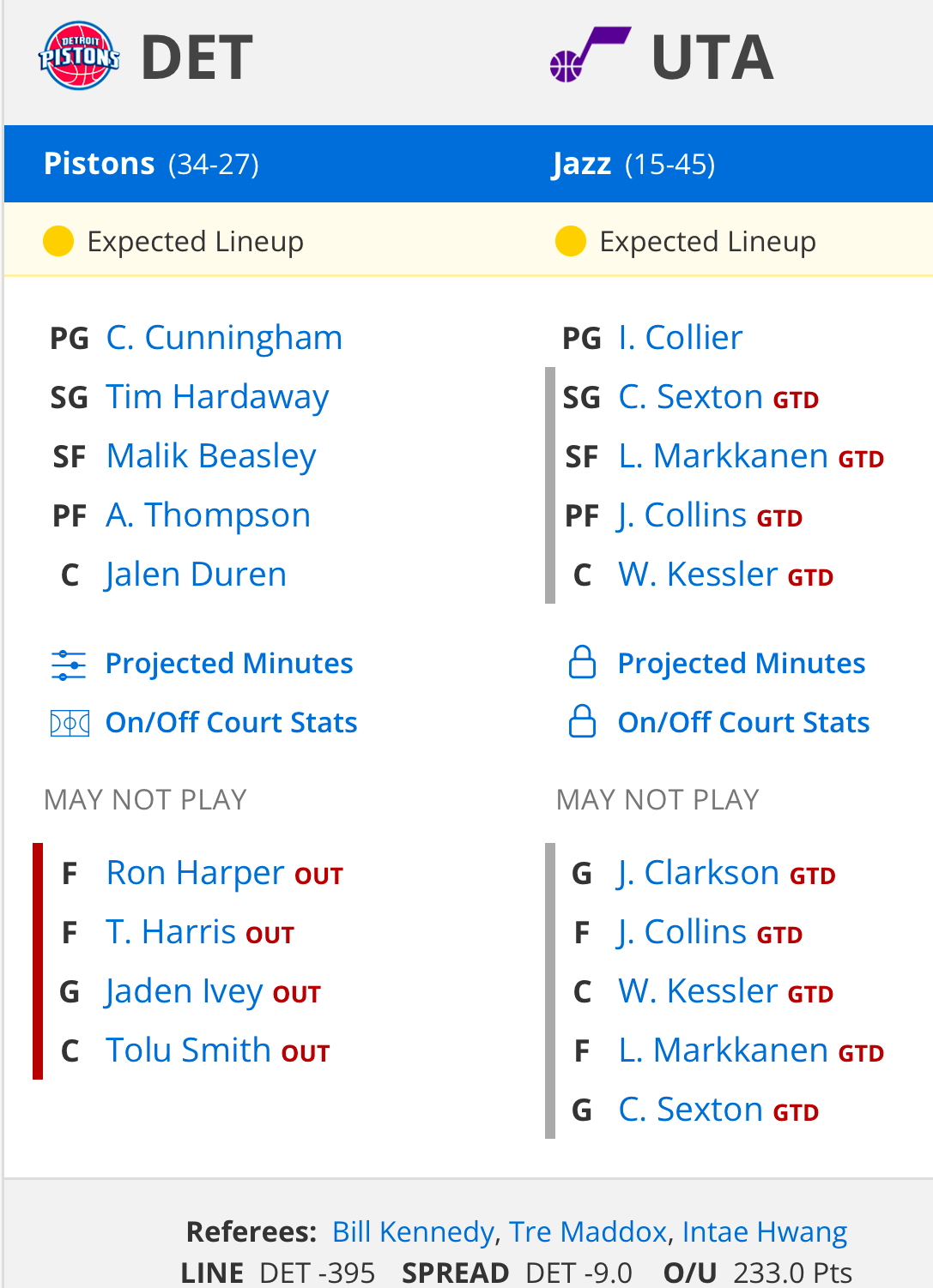 유타 vs 디트로이트