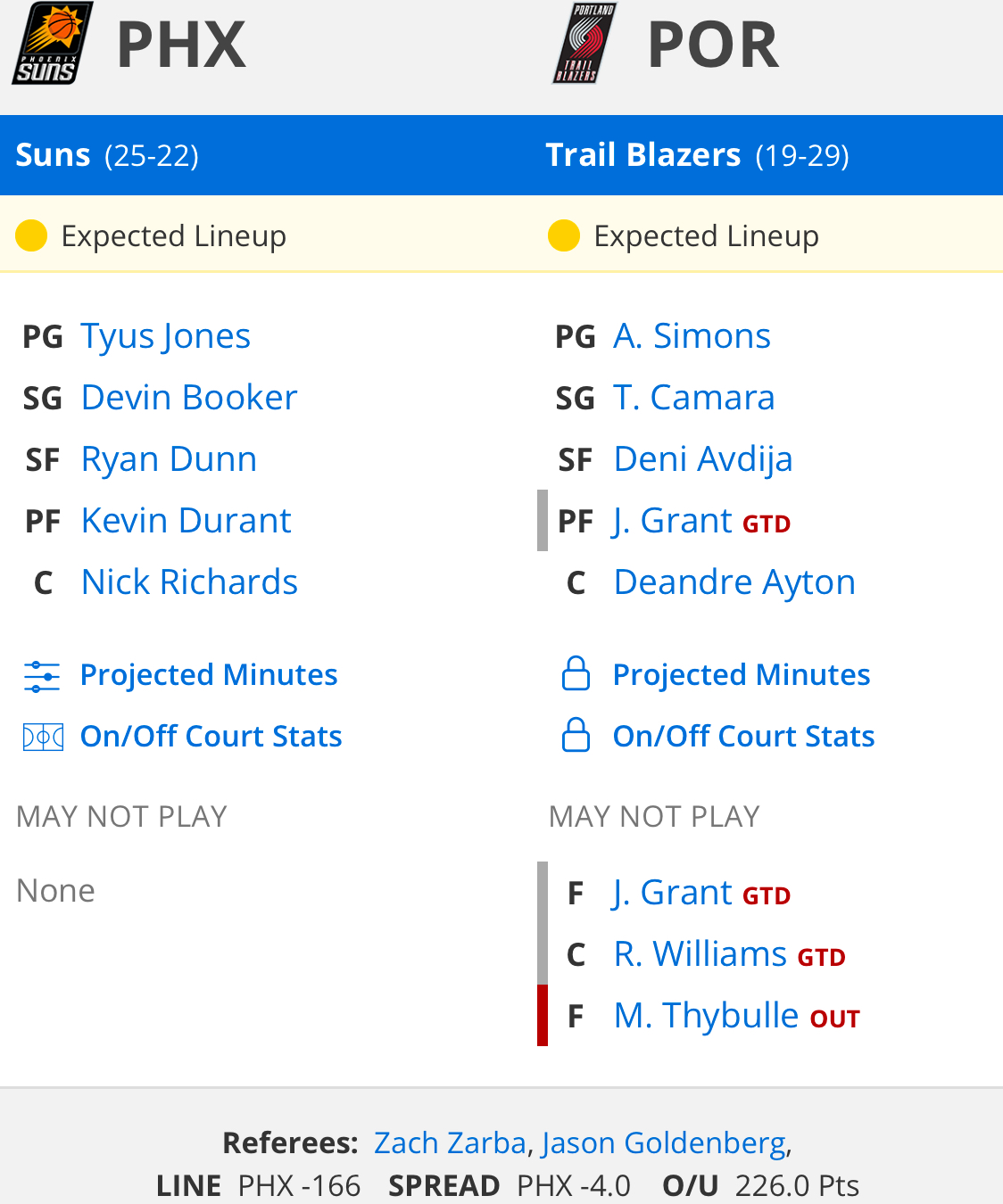 포틀랜드 vs 피닉스
