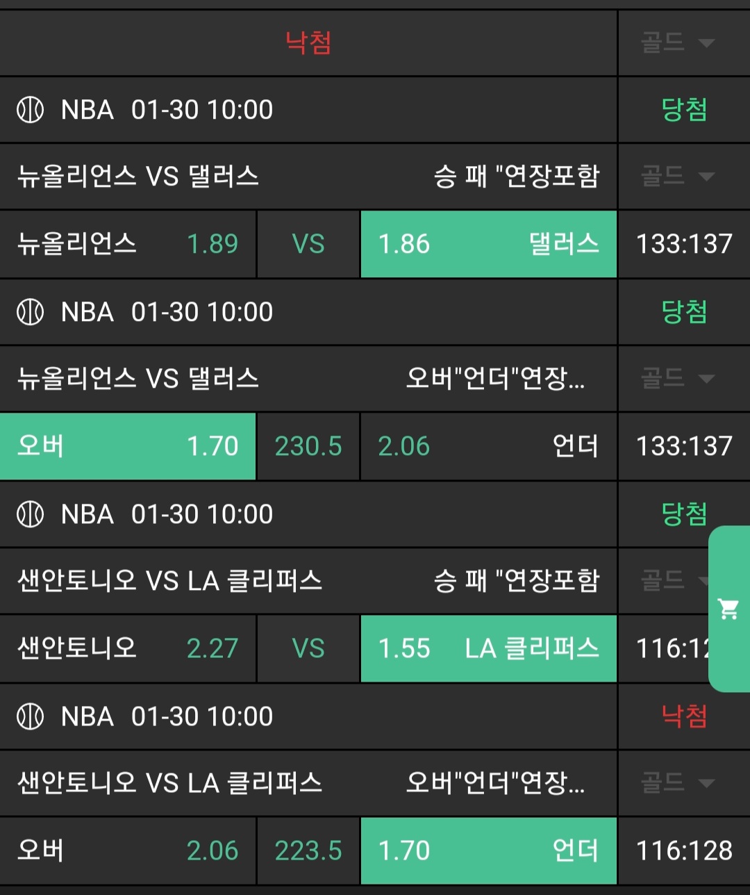 N느바조합 막경기 조합적중
