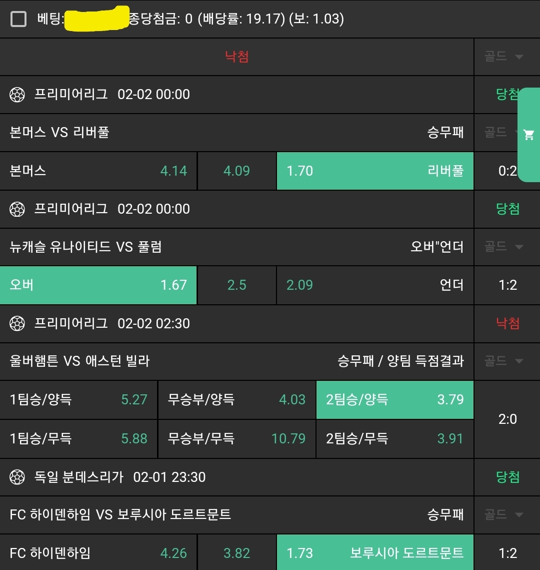N느바조합 막경기 조합적중
