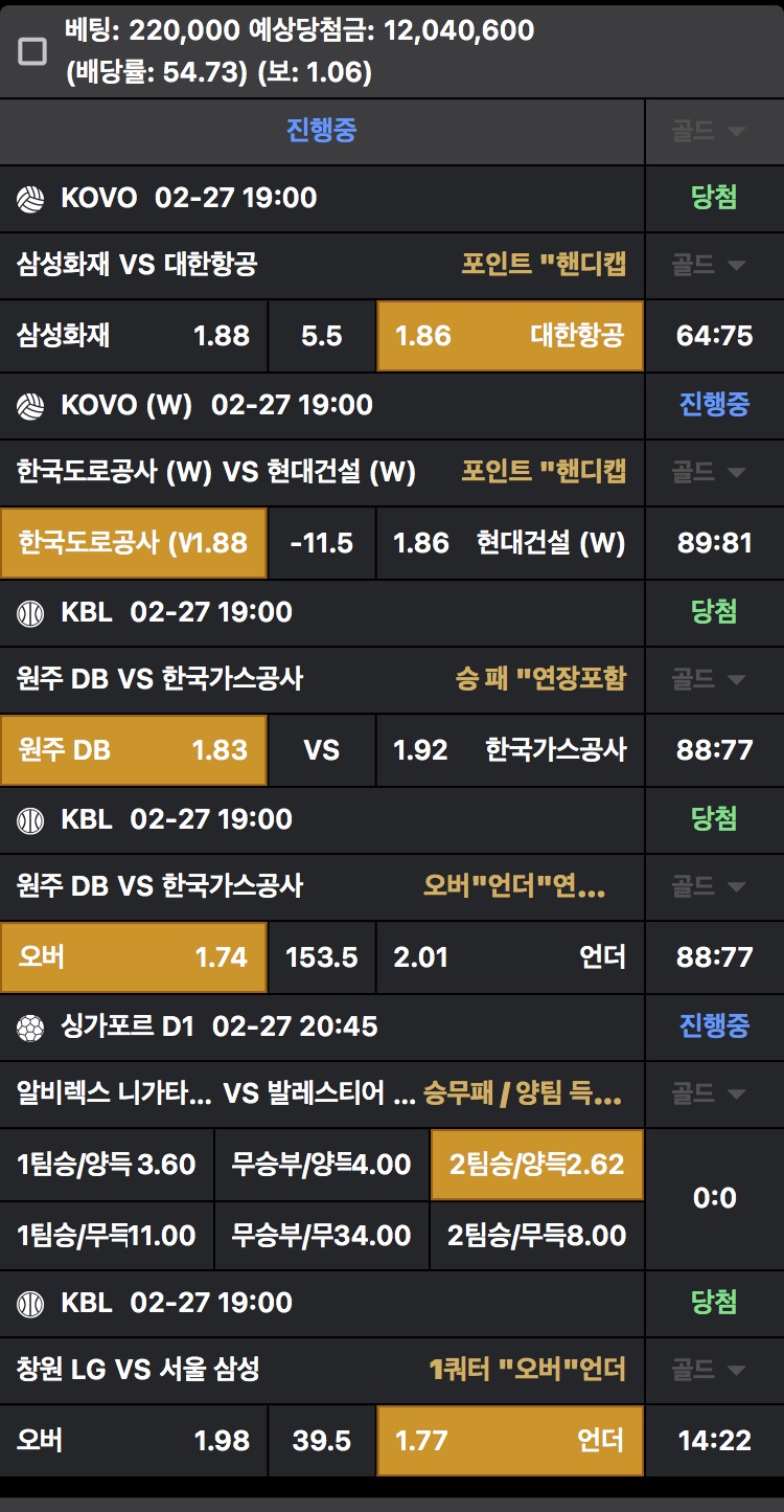 N느바조합 막경기 조합적중