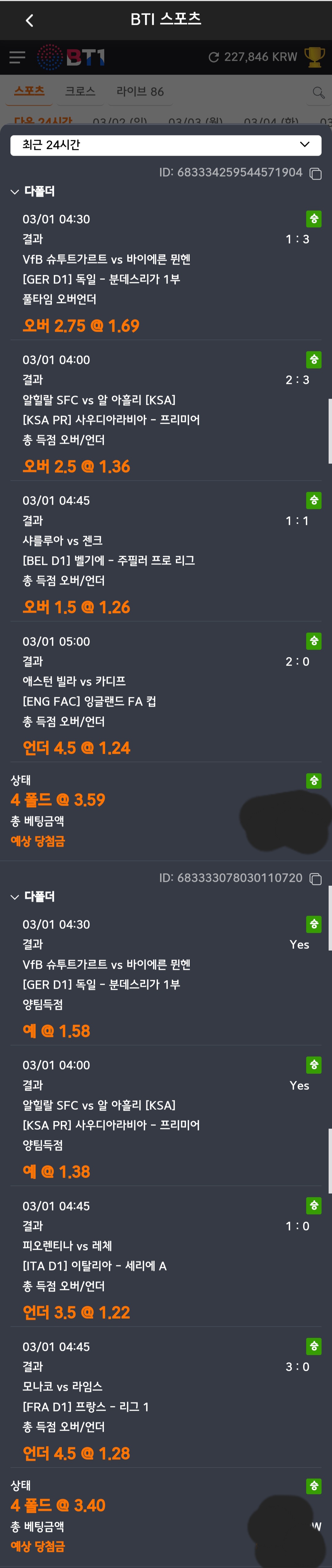 국내 4폴적중