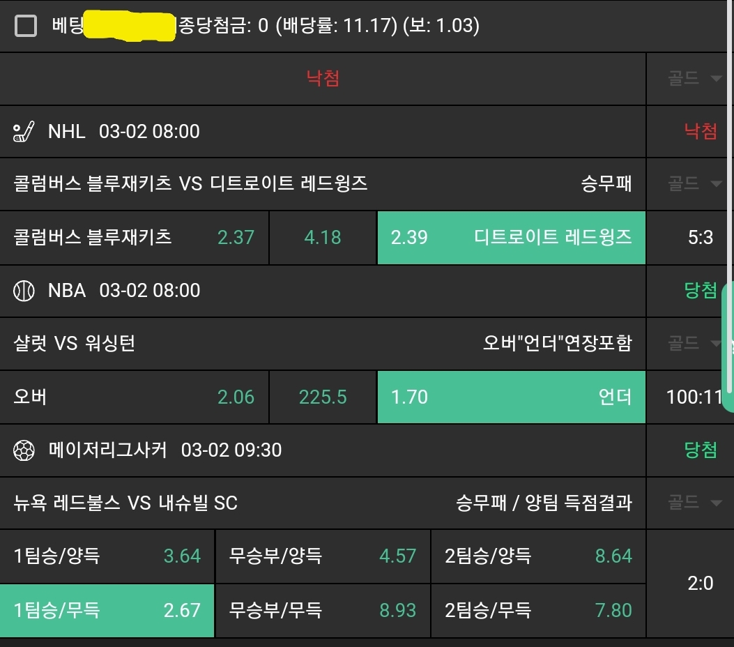 느바조합 막경기 조합적중