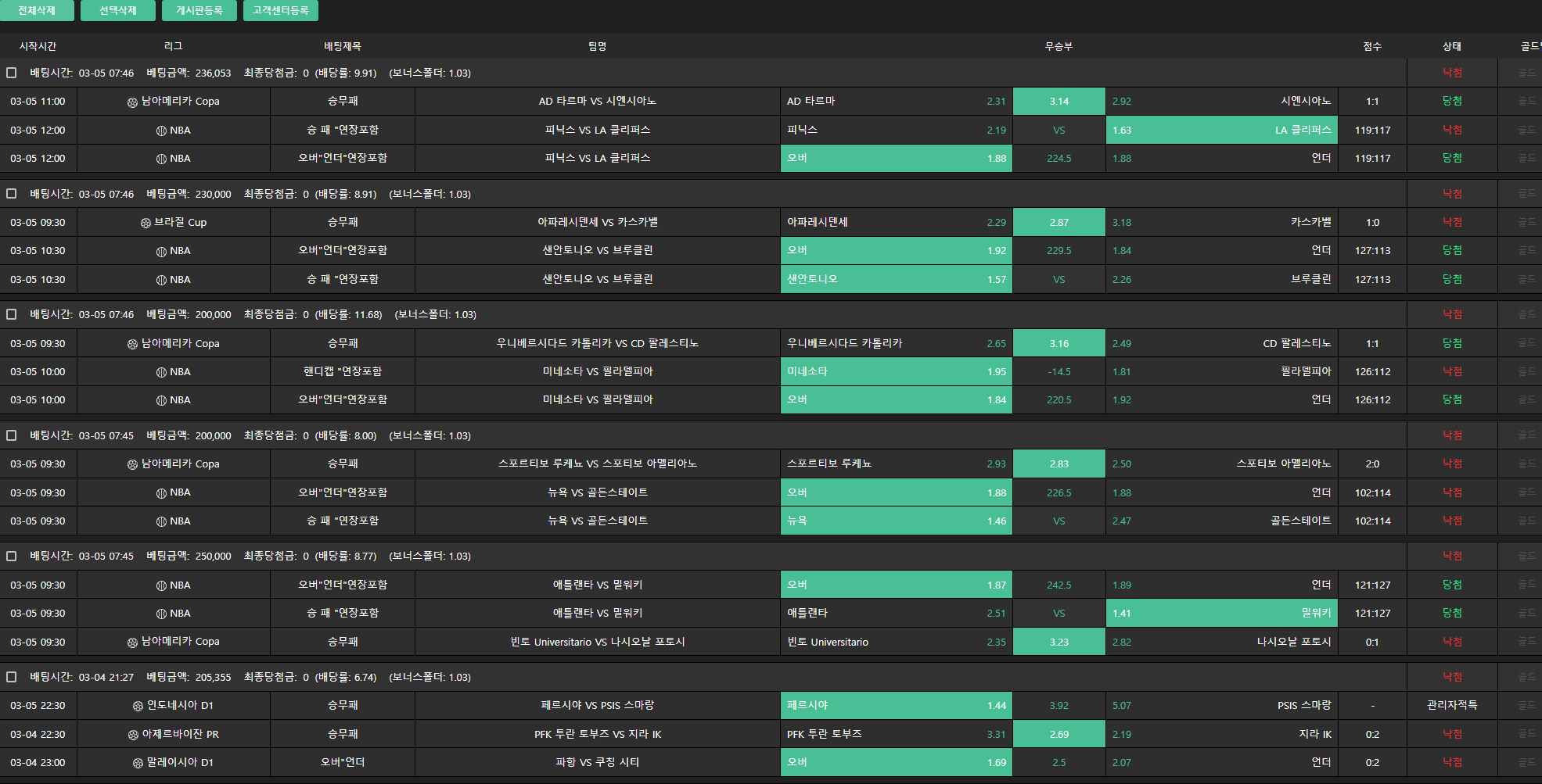 N느바조합 막경기 조합적중
