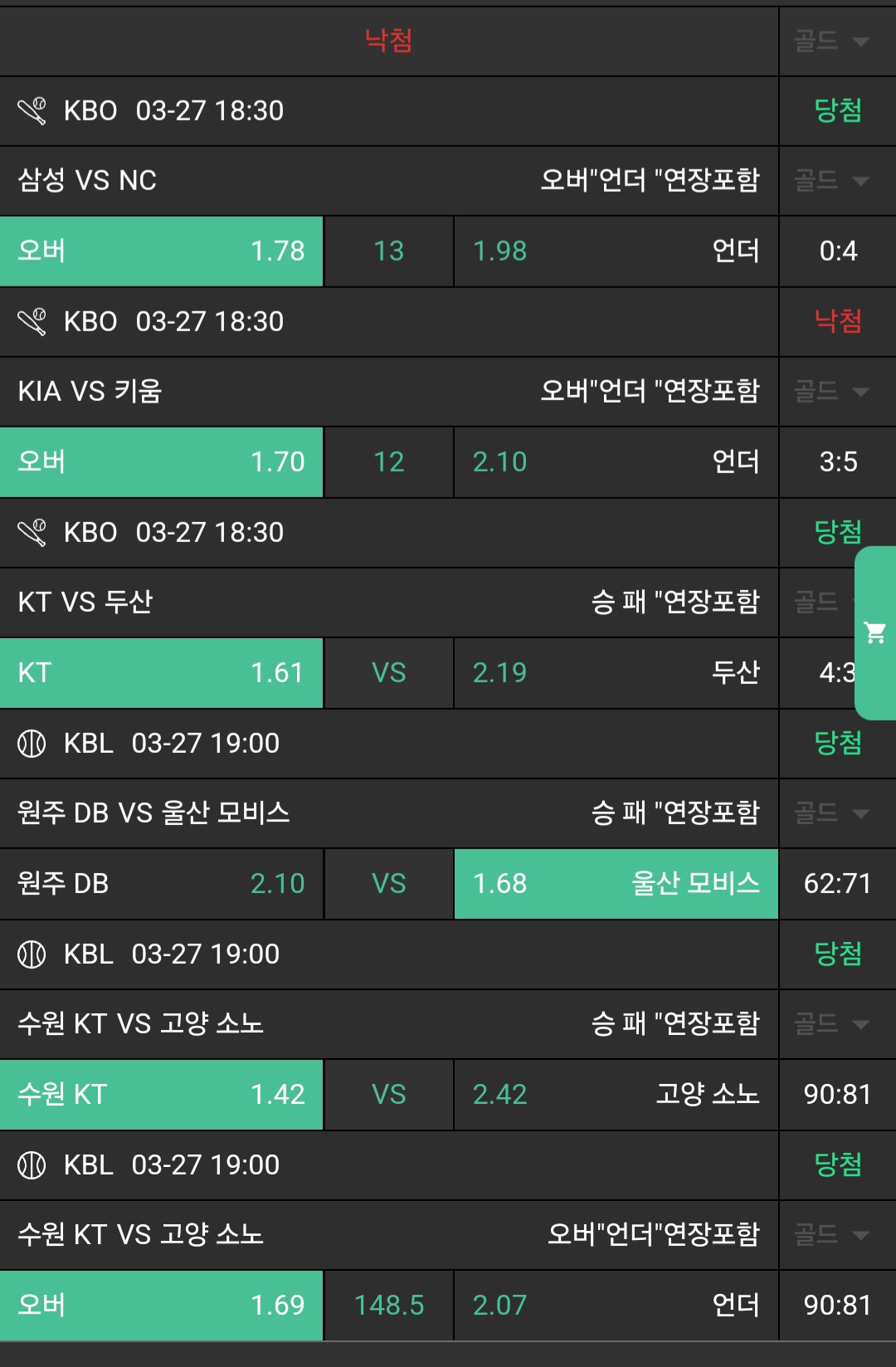 N느바조합 막경기 조합적중