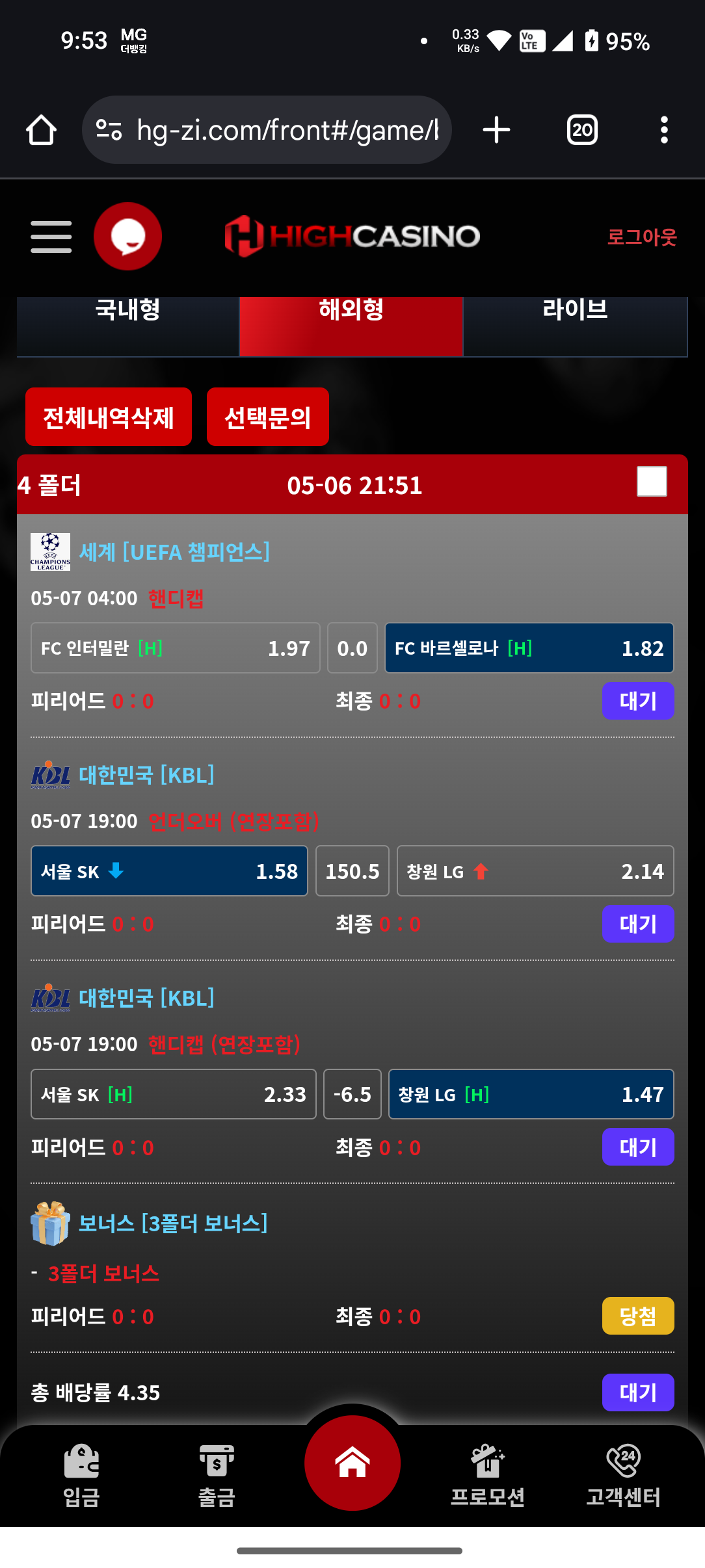 간만에 배팅가주아~