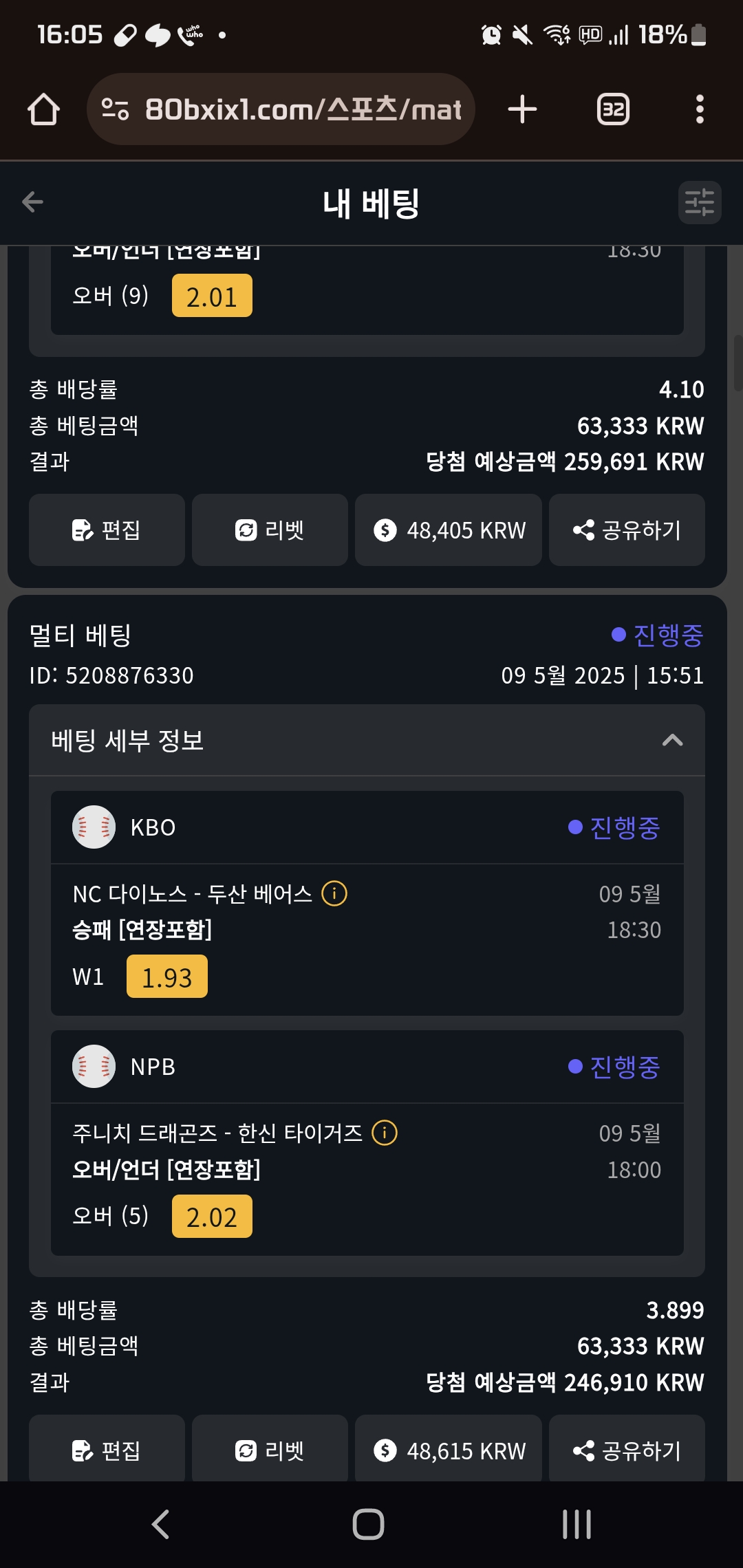 간만에 배팅가주아~