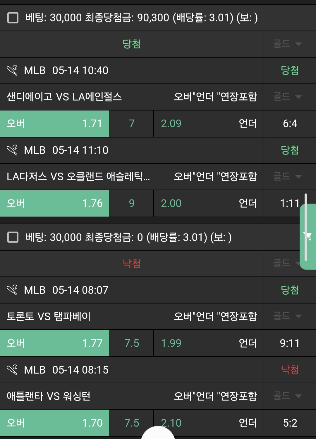 N금일 느바 막경기들조합 적중 +2